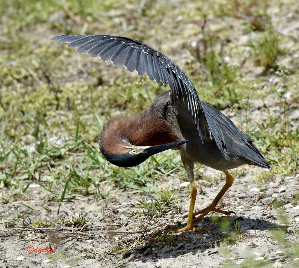 Green heron grooming. North Port Florida